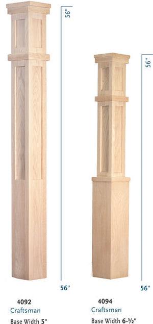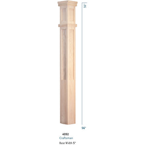 4092 Craftsman Rectangular Panel Box Newel Post | USA-Made Stair Parts