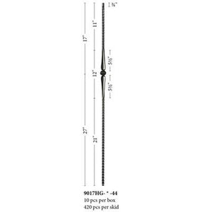 9017 Single Knuckle w/ Hammered Bar Iron Baluster Spindle | Metal Railing