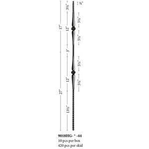 9018 Double Knuckle w/ Hammered Bar Iron Baluster Spindle | Metal Railing