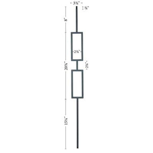 9091 3 3/4" Double Rectangle Iron Baluster Spindle | Metal Railing