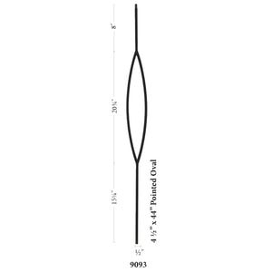 9093 Contemporary Alto 4 1/2" Pointed Oval Marquis Iron Baluster Spindle | Metal Railing