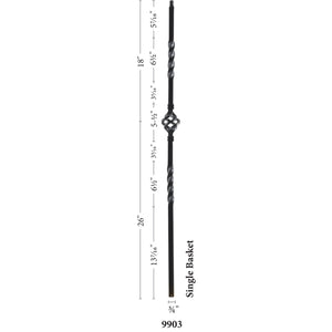 9903 MEGA 3/4" Square 1BASK Single Basket Iron Baluster Spindle | Metal Railing