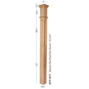 MFP-4075 Mission Contemporary Flat Panel Box Newel Post | USA-Made Stair Parts